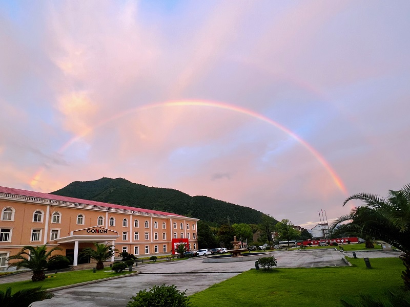 赤橙黃綠青藍(lán)紫,誰(shuí)持彩練當(dāng)空舞?雨后復(fù)斜陽(yáng),關(guān)山陣陣蒼……古往今來(lái),描寫彩虹的詩(shī)詞有很多,而毛澤東的這首《菩薩蠻·大柏地》則以歡快的筆調(diào),描繪了一幅色彩斑斕的大柏地雨后的壯麗景色,抒發(fā)了作者的革命豪情。在海螺看到美麗彩虹,您會(huì)發(fā)出怎樣的感慨呢?