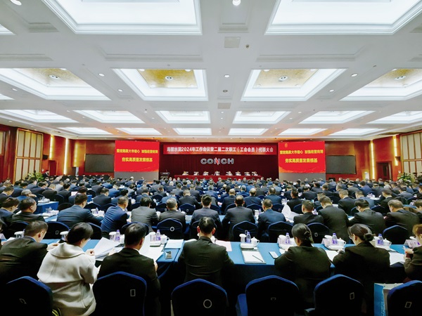 1月30日下午,海螺水泥在總部大廈三樓海螺廳召開了2024年工作會(huì)議暨二屆二次職工(工會(huì)會(huì)員)代表大會(huì)。總結(jié)2023年工作,部署2024年經(jīng)營目標(biāo)任務(wù)。公司班子、各區(qū)域、子公司主要負(fù)責(zé)人、部室負(fù)責(zé)人以及職工代表共290余人在蕪湖主會(huì)場(chǎng)參加了會(huì)議,各子公司其他班子成員及二級(jí)部門主要負(fù)責(zé)人以視頻連線方式參會(huì)。會(huì)議由公司副總經(jīng)理吳鐵軍主持。