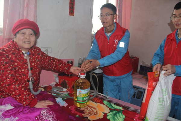 鳳凰山海螺暖心行動,組織志愿者們赴公司周邊村莊看望慰問老人,為他們送去米、油等生活物品。