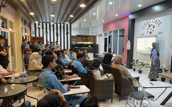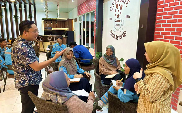 At South Kalimantan Conch, the Chinese-Indonesian language corner meets weekly over coffee and snacks, encouraging open dialogue on themes like “safety production” and “l(fā)ocal cuisine.”