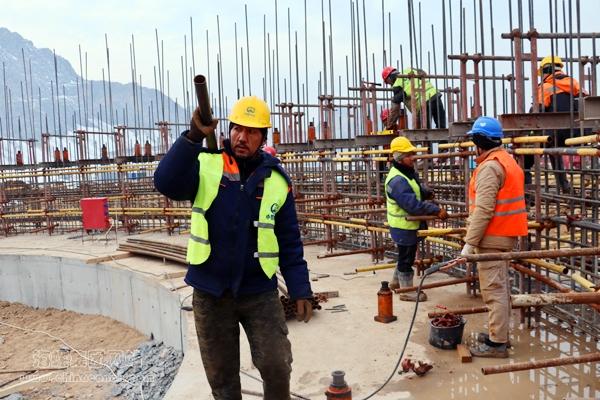 巍巍雪山下,廣闊原野上,地處中亞腹地的烏茲別克斯坦塔什干海螺項目施工現(xiàn)場,塔吊林立,機器轟鳴,近900名工人正熱火朝天地奮戰(zhàn)在施工一線。項目主體工程多數(shù)框架已交安,設(shè)備物資到貨3萬方,回轉(zhuǎn)窯托輪吊裝就位,煤立磨完成主體安裝,宿舍樓結(jié)構(gòu)封頂,主廠區(qū)初見雛形。