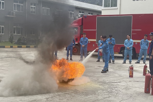“發(fā)現(xiàn)明火時,要保持冷靜、切勿慌張,及時撥打119火警電話報警并對現(xiàn)場進行斷電,隨后拿到滅火器首先要將其上下顛倒搖晃使干粉松動,然后拔掉鉛封、拉出保險銷,站在上風口距著火源2-5米位置對準火焰根部噴射……”在凌云通鴻公司,百色市凌云縣消防大隊應邀到公司開展消防安全知識培訓及實操演練。