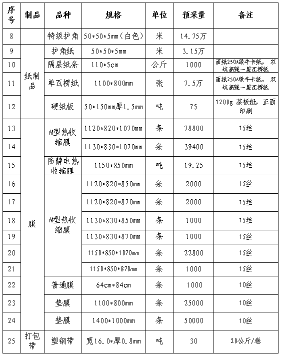 根據(jù)公司生產(chǎn)經(jīng)營(yíng)計(jì)劃,為確保2023-2024年度產(chǎn)品包裝需求;現(xiàn)本著“公開(kāi)、公平、公正、透明”的原則公開(kāi)招標(biāo),誠(chéng)邀經(jīng)營(yíng)能力較好、產(chǎn)品質(zhì)量合格、保供和服務(wù)能力較強(qiáng)的包裝材料生產(chǎn)單位參加投標(biāo),現(xiàn)將有關(guān)事項(xiàng)公告如下: