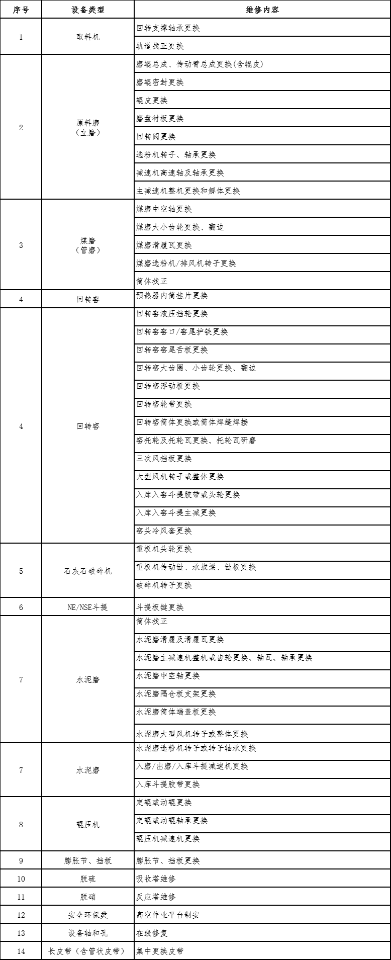 云南區(qū)域關(guān)于2023年水泥設備維修項目入圍及指導價公示附件.doc