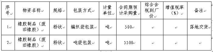 3.投標(biāo)申請人需提供貨源相關(guān)合法證明(包含但不限于貨源地廠家環(huán)評備案材料、買賣合同等能證明物料可合理利用的材料),確保貨源合法合規(guī),我公司僅接收中標(biāo)渠道合法取得的橡膠制品(廢舊橡膠),投標(biāo)人不得弄虛作假。
