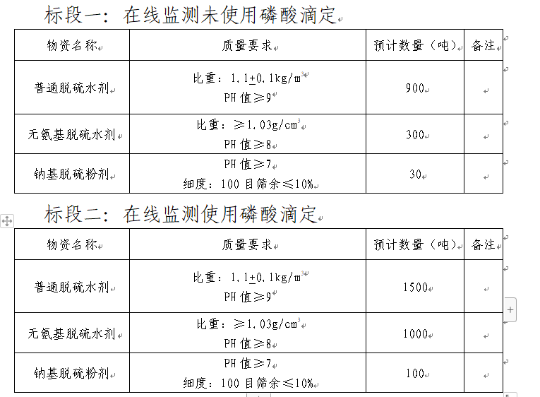 3.質(zhì)量指標(biāo):滿足國(guó)家化工合格品相關(guān)質(zhì)量控制標(biāo)準(zhǔn),產(chǎn)品對(duì)設(shè)備無(wú)腐蝕,對(duì)熟料質(zhì)量和正常生產(chǎn)無(wú)影響。同時(shí)預(yù)計(jì)招標(biāo)人將在2024年2月份開(kāi)始使用在線監(jiān)測(cè)磷酸滴定法,要求中標(biāo)單位提前做好相關(guān)準(zhǔn)備,屆時(shí)收到招標(biāo)人正式通知后馬上啟動(dòng)。