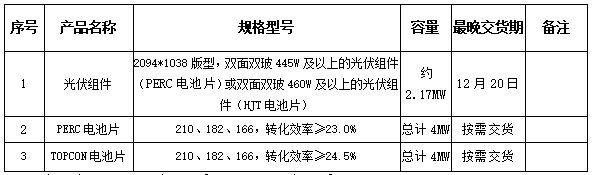 根據(jù)生產(chǎn)經(jīng)營需要,宣城海螺建筑光伏科技有限公司擬對2023年度光伏組件、電池片采購進行公開招標,為進一步體現(xiàn)“公開、公平、公正”的原則,現(xiàn)發(fā)布公開招標信息,歡迎有能力的單位報名參加此次招標活動,現(xiàn)將有關(guān)事項公示如下: