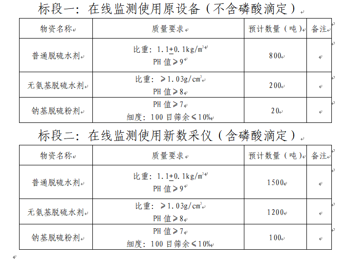 3.質(zhì)量指標(biāo):滿足國家化工合格品相關(guān)質(zhì)量控制標(biāo)準(zhǔn),產(chǎn)品對(duì)設(shè)備無腐蝕,對(duì)熟料質(zhì)量和正常生產(chǎn)無影響。同時(shí)預(yù)計(jì)招標(biāo)人將在2024年2月份開始在線監(jiān)測(cè)使用新數(shù)采儀(含磷酸滴定),要求中標(biāo)單位提前做好相關(guān)準(zhǔn)備,屆時(shí)收到招標(biāo)人正式通知后馬上啟動(dòng)。