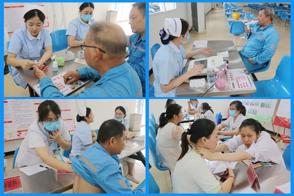講座結束后,來自普通外科、內(nèi)分泌科、呼吸內(nèi)科、婦科、中醫(yī)康復科、檢驗科等科室的資深專家在職工食堂一字排開,為員工提供包括血壓血糖檢測、心肺聽診、B超檢查、中醫(yī)把脈等在內(nèi)的全方位健康服務。專家們不僅耐心解答各類健康疑問,更針對水泥行業(yè)常見的職業(yè)健康問題給予了專業(yè)指導。