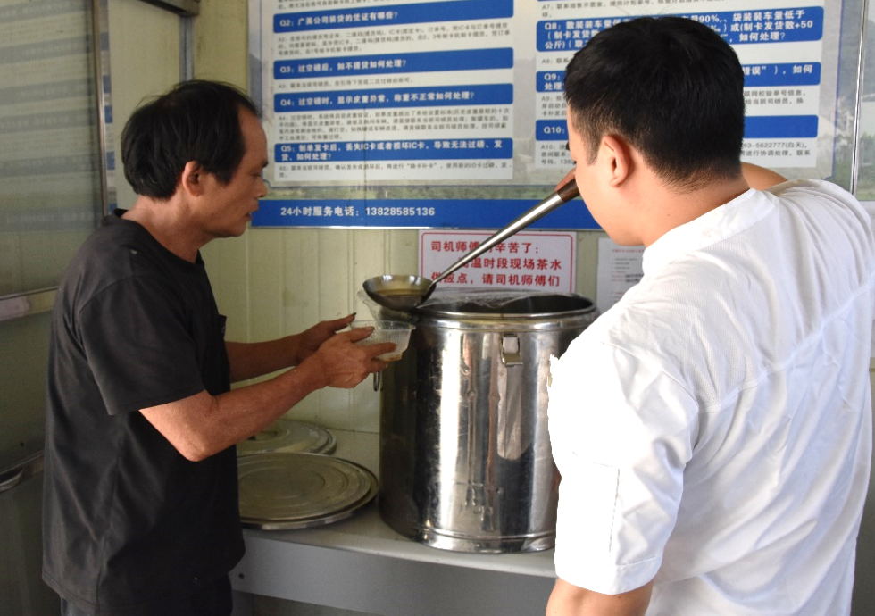 二線(xiàn)發(fā)運(yùn)廣場(chǎng)上,貨運(yùn)司機(jī)們駕著車(chē)輛往來(lái)穿梭,九月陽(yáng)光把駕駛室烤得像“蒸籠”。公司特意在制卡房設(shè)“清涼供應(yīng)點(diǎn)”,工作人員持長(zhǎng)勺為休整的司機(jī)舀上滿(mǎn)滿(mǎn)的一碗清熱綠豆湯。“跑長(zhǎng)途最怕熱天,這兒隨時(shí)都能享受到公司的夏日關(guān)懷,太貼心了!”剛結(jié)束運(yùn)輸?shù)膹垘煾到舆^(guò)綠豆湯不住夸贊。小小的制卡房,成了司機(jī)們的“清涼港灣”,讓奔波的物流崗位也被關(guān)懷緊緊包裹。