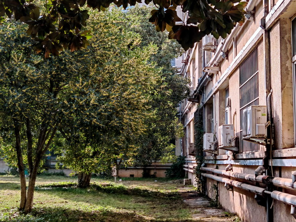 在廠文化宮前,在莊嚴(yán)的廠大門入口,尤其是在辦公樓后方,三株格外高大茂盛的桂花樹靜靜佇立。它們與工廠同齡,是1978年工廠建設(shè)之時(shí)便親手栽下的“元老”。近五十年風(fēng)雨同行,它們從稚嫩的樹苗長(zhǎng)成如今的華蓋亭亭,猶如盡職盡責(zé)、默默奉獻(xiàn)的老員工,深深扎根于此,見證著工廠的成長(zhǎng)與變遷,也用自己的每一次新綠、每一樹繁花,默默裝點(diǎn)著這座現(xiàn)代化工業(yè)基地的四季風(fēng)景。