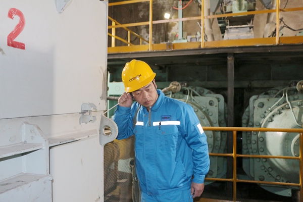 在這之后,孫林通的目光和腳步,先后三次回到這個(gè)位置。他俯身觀察,對(duì)比記錄,確認(rèn)滲水量雖然很小,但卻在持續(xù)地增加。他深知任何的疏忽或僥幸,都可能讓隱患在“再觀察一下”的拖延中升級(jí)。清晨六點(diǎn),當(dāng)滲水現(xiàn)象已轉(zhuǎn)為清晰可見的細(xì)流時(shí),孫林通果斷拿起對(duì)講機(jī),向上級(jí)進(jìn)行了清晰、準(zhǔn)確地匯報(bào):“4#輥壓機(jī)動(dòng)輥有載端滲水加劇,疑似內(nèi)部構(gòu)件異常,請(qǐng)設(shè)備人員立即現(xiàn)場(chǎng)確認(rèn)!”