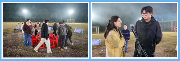 你看這邊的燒烤區(qū),雖伴著冬季傍晚的微涼,卻處處洋溢著火熱的氣息。員工們自發(fā)組成燒烤小隊,分工協(xié)作、默契配合,有人熟練翻轉(zhuǎn),精心控制火候讓食材能夠達(dá)到最佳風(fēng)味;有人熱情分發(fā)調(diào)料和飲品,不時揮舞著熒光棒配合樂隊的演出節(jié)奏。平時忙于各自崗位的員工都在此刻化身為“燒烤大師”,在炊煙裊裊與歡聲笑語中,彼此間的距離迅速拉近,交流也變得自然而融洽。